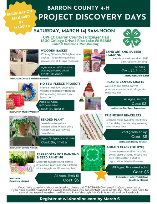 If you have questions about registering, please call 715-788-6240 or email 4h@co.barron.wi.us