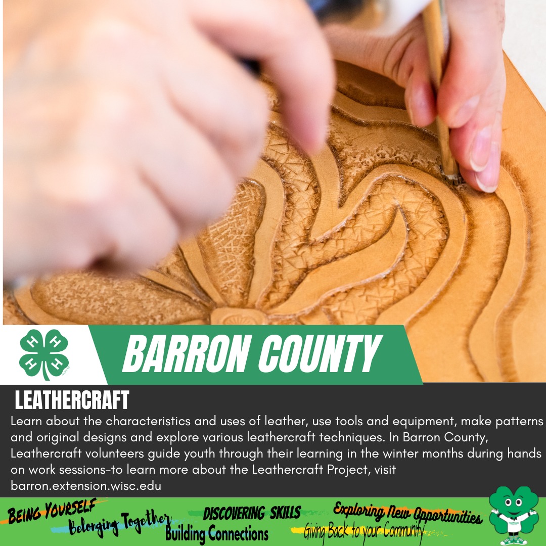 - Barron County 4-H youth in grades 3rd and older can work with 4-H leathercraft volunteers to learn the art of leathercraft. Members are able to work one-on-one and in small groups to advance at their own pace.