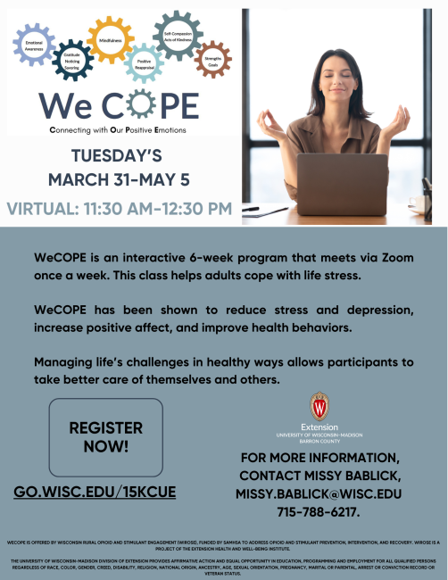 - WeCOPE has been shown to reduce stress and depression, increase positive affect, and improve healthy behaviors.